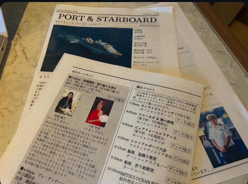 参加者の方に大変好評をいただき、引き続き現在航海中の「夏の小豆島・長崎・済州島クルーズ」(8/24-9/2)でも開講しています。